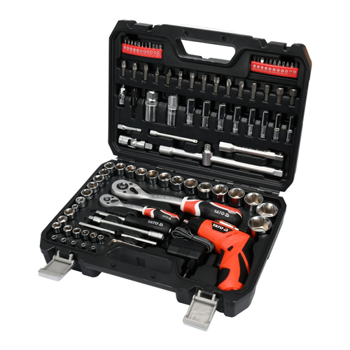 A professional 100-piece toolkit that has been developed with the needs of specialized users in mind. The socket wrenches and the drive of the sockets are made of durable, tool CrV 50BV3 chrome-vanadium steel. Sockets equipped with the AS-Drive system, increasing the maximum torque by 25%, with full protection of the rim of the nuts, sockets with a two-tone surface finish.