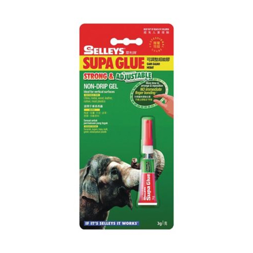Selleys Supa Glue Strong & Adjustable is a fast setting ethyl cyanoacrylate based adhesive with a non-drip gel consistency which dries clear.