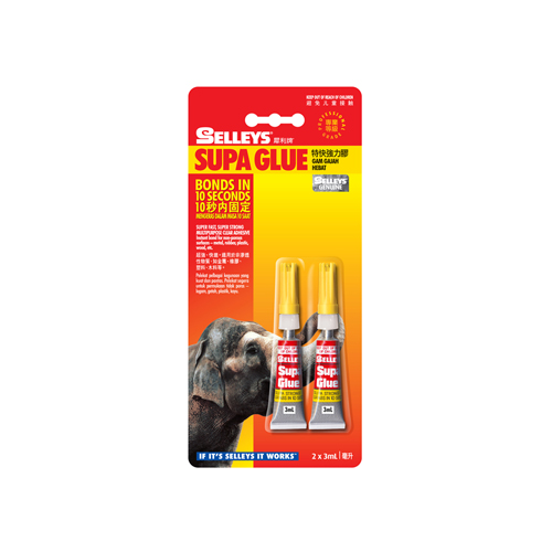 Selleys Supa Glue is a fast setting all rounder adhesive, sets as fast as 10 seconds.