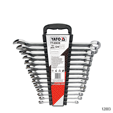 YATO Combination Wrench Set contains 14 wrenches made of chrome vanadium steel. These are perfect for work in professional workshops under variable loads. Especially because these tools meet the international DIN 3113 standards. The wrenches have an aesthetic satin finish and a polished head which also minimize slippage of oil contaminated spanner when working.