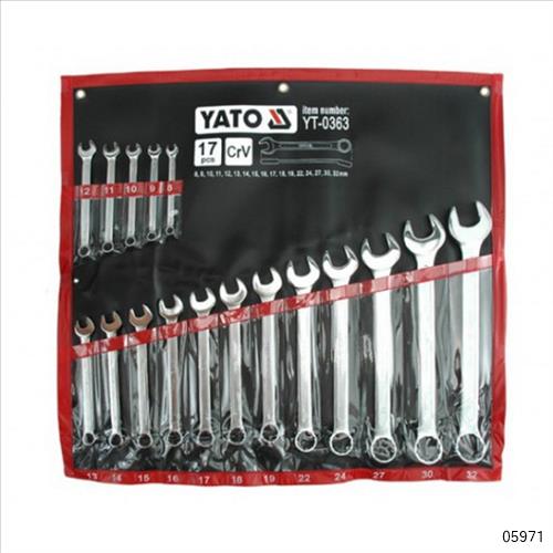 YATO Combination Wrench Set contains 17 wrenches made of chrome vanadium steel. These are perfect for work in professional workshops under variable loads. Especially because these tools meet the international DIN 3113 standards. The working plane of the wrench is tilted by 15° which better facilitates in handling of the nut. Furthermore, a special tooth profile increases the maximum tightening torque by 15% without damaging the nut. The wrenches have an aesthetic satin finish and a polished head which also minimize slippage of oil contaminated spanner when working.