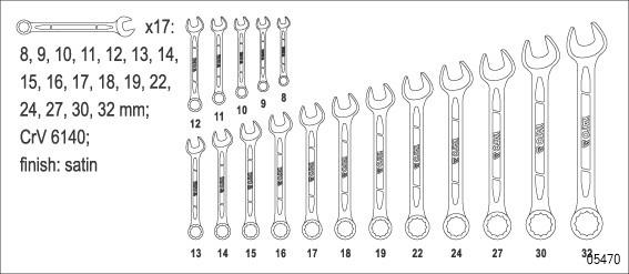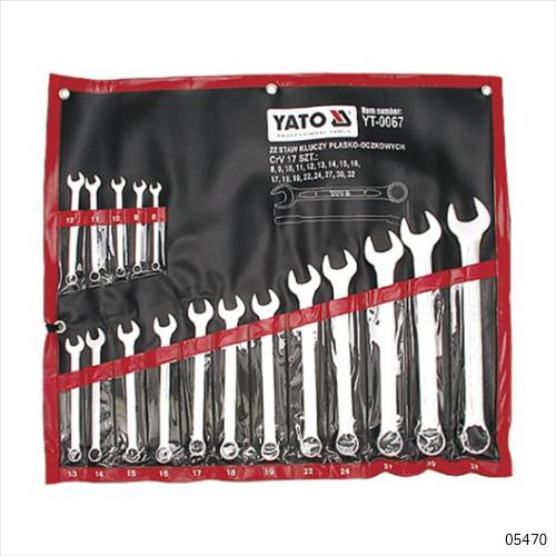 YATO Combination Wrench Set contains 17 wrenches made of chrome vanadium steel. These are perfect for work in professional workshops under variable loads. Especially because these tools meet the international DIN 3113 standards. The working plane of the wrench is tilted by 15° which better facilitates in handling of the nut. Furthermore, a special tooth profile increases the maximum tightening torque by 25% without damaging the nut. The wrenches have an aesthetic satin finish and a polished head which also minimize slippage of oil contaminated spanner when working.