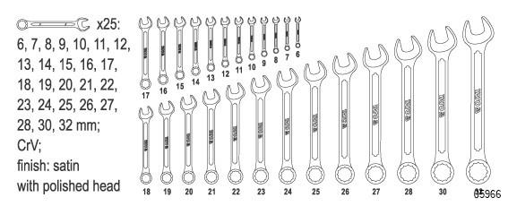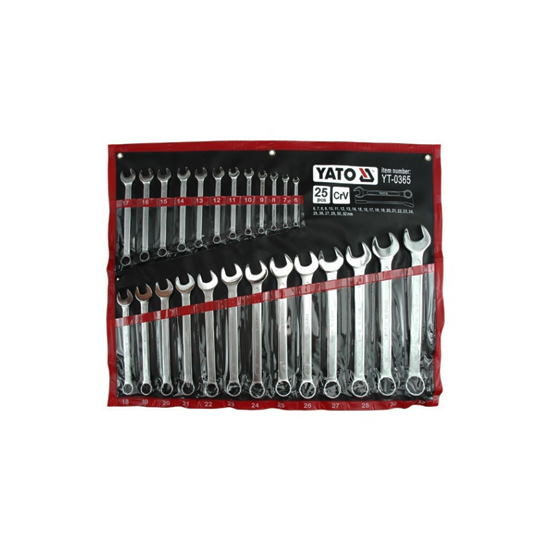 YATO Combination Wrench Set contains 25 wrenches made of chrome vanadium steel. These are perfect for work in professional workshops under variable loads. Especially because these tools meet the international DIN 3113 standards. The working plane of the wrench is tilted by 15° which better facilitates in handling of the nut. Furthermore, a special tooth profile increases the maximum tightening torque by 15% without damaging the nut. The wrenches have an aesthetic satin finish and a polished head which also minimize slippage of oil contaminated spanner when working.