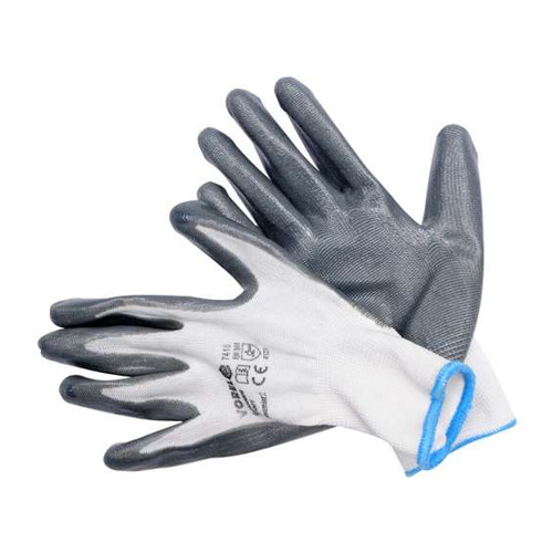 Protective work gloves 74152 made of white polyester, coated in the grip part with gray nitrile.