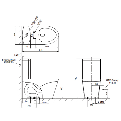 - Adjustable Dual Flush: 3.5/5.0L