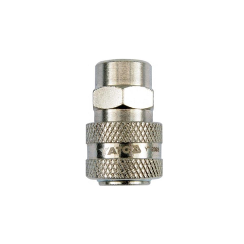 Yato Quick Coupler is used to connect compressed air tools to a compressed airline. A quick coupler allows a tool to be easily connected or disconnected to a hose or pipe while it is under pressure. The standard design makes it easily insertable for a leakproof connection. It is made from high-quality iron Q235 material with a nickel finish for corrosion resistance. This quick coupler can be used for industrial apparatus, mechanical equipment and more.