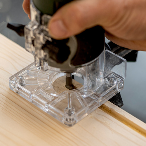 - Transparent baseplate for maximum view of the router bit and workpiece