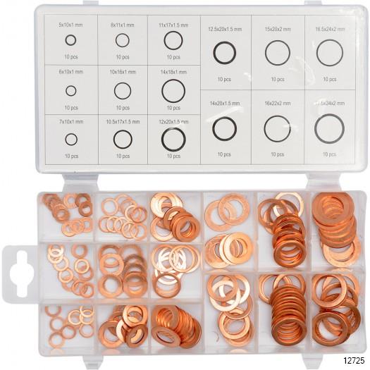 YATO Copper Washers Assortment set is a set of copper washers for workshop applications. The whole is packed in a handy plastic box with partitions ensuring order and proper segregation of the sizes of the pads. This package contains 10 pieces each of the following:
