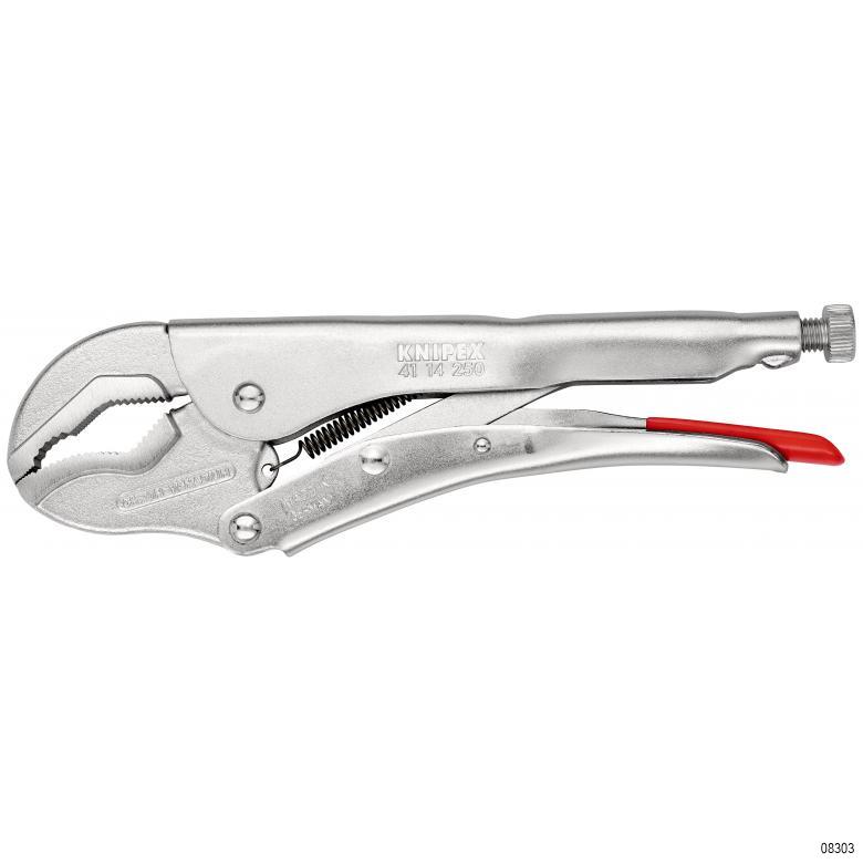 These KNIPEX Gripping Pliers can securely hold or grip flat, round, square or hexagonal-shaped objects. The 10" Universal Grip Pliers, feature an adjustment screw that controls the holding/gripping pressure. They have a slim head that is perfect for working in confined spaces. Our gripping pliers are made of forged chrome vanadium electric steel for heavy-duty durability. The one-handed operation makes these tool is ideal for every day use.