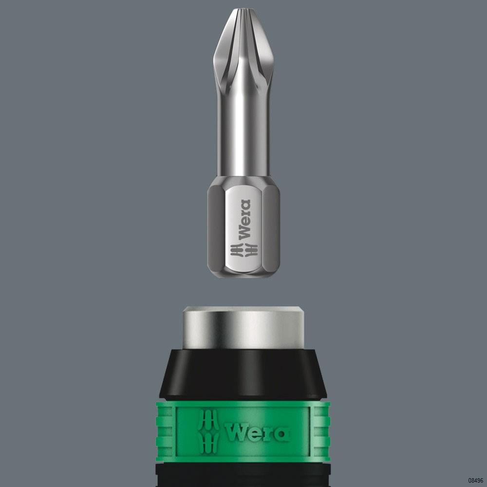 Wera torque screwdriver. Variable torque setting option with highest precision. Simple adjustment of the required torque value without any special tools. Easy-to-read scale value and audible click signal. Rapidaptor quick-release technology for rapid bit change. Unlimited torque to loosen seized screws. Multi-component Kraftform handle with hard and soft zones for high working speeds whilst being easy on the hand. Suitable for bits with ¼” hexagon head drive.