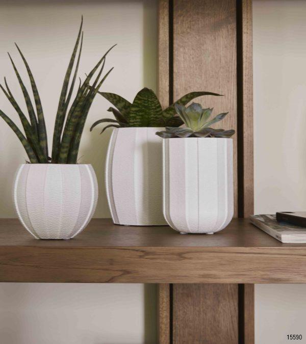 This handmade indoor planter is inspired by contemporary architecture. Combined with plants this series will complement the green lifestyle in a stylish way. This texture has broad, vertical lines. These raw lines make these planters a bit futuristic.