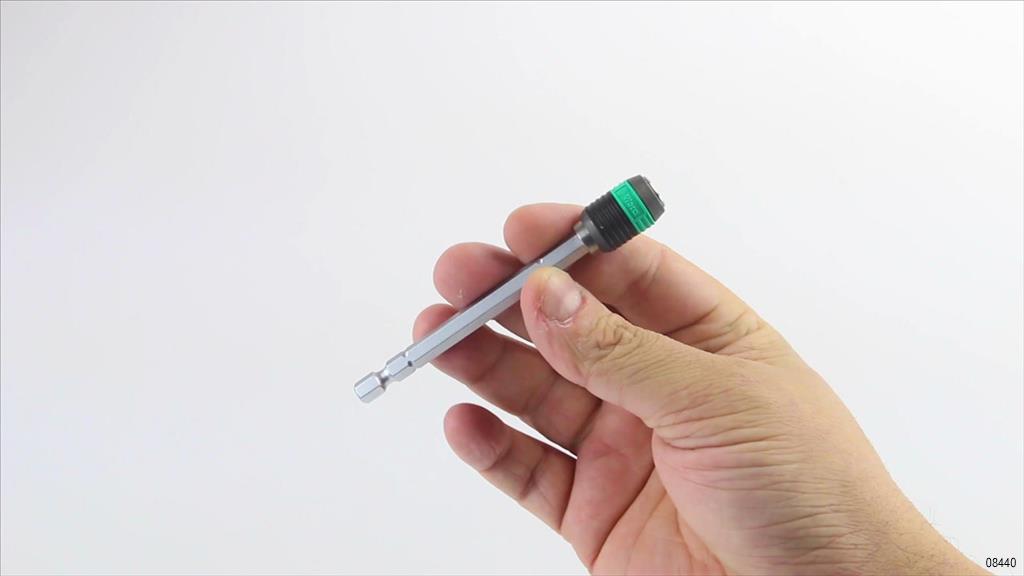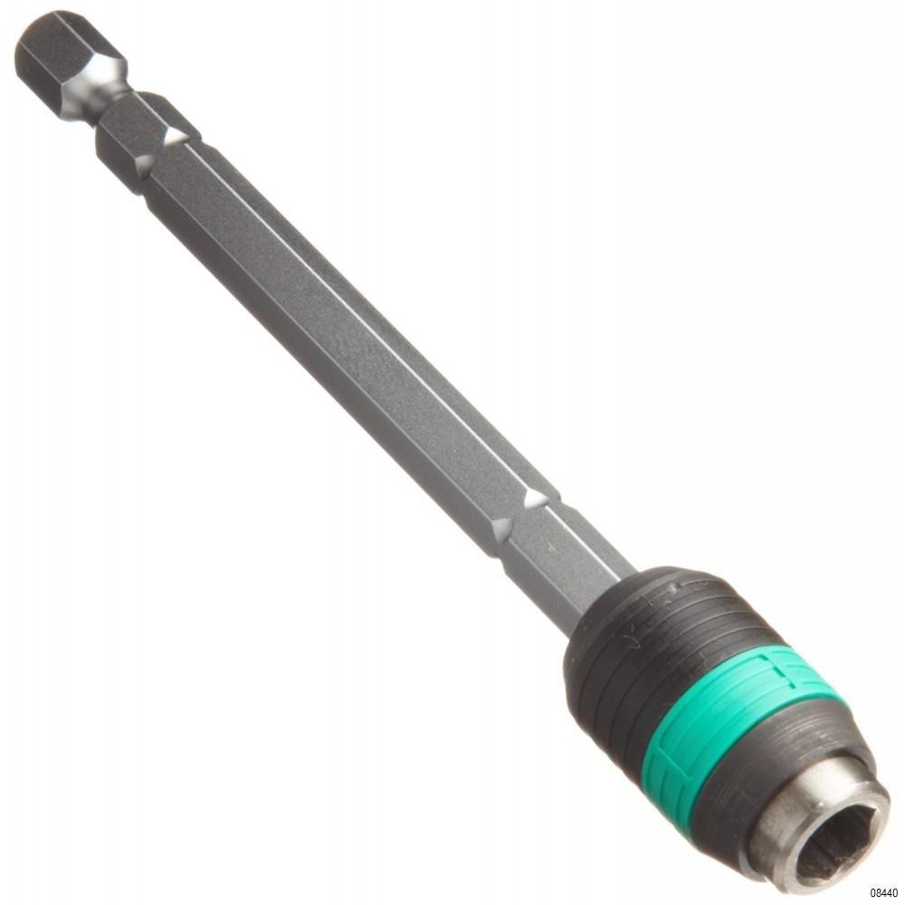 Universal Rapidaptor bit holder with 1/4 "hex shank according to DIN ISO 1173-C 6.3 and E 6.3 (ISO 1173). Rapidaptor allows you to insert bits even without using a sleeve. Removing the bits is done by simply sliding the sleeve forward - instant bit change even with one hand. Strong permanent magnet holds the bits with a dead grip. 1/4 "external hex shank suitable for use in screwdrivers with DIN ISO 1173-F 6.3 chuck.