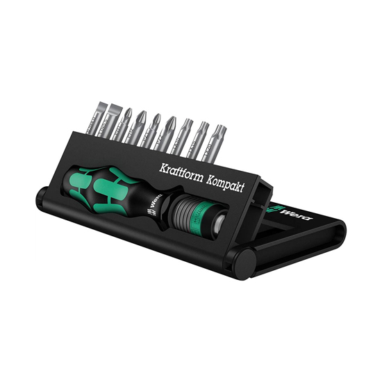 Wera 10 Piece, Kraftform Kompakt 10 is designed as the compact tool for everyday use. Wera’s Kraftform bitholder features the Rapidaptor with quick-release chuck that allows for quick one-handed bit insertion and removal for insert and power bits.