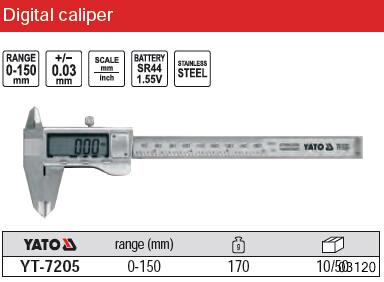 YATO Digital Vernier Caliper is made out of stainless steel. It can measure of a range up to 0 - 150mm with an accuracy or +/- 0.03mm. It has a normal scale along with a LCD digital display. It comes with a storage box which helps in carrying it around. Since the Vernier caliper is made out of stainless steel it ensures durability of the product.