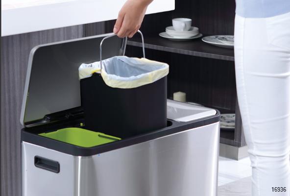 Stylish form meets convenient function in the ECO-CASA Step trash can collection. Choose the size and inner configuration that helps you best manage your waste and recyclables. Single, dual and triple compartment versions with color-coded inner liners make responsible waste management a breeze.