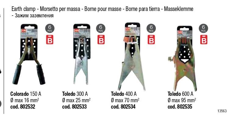 TELWIN Earth Clamp Toledo is a professional high quality earth clamp, ideal for demanding welding applications. It is suitable for cables sizes up to 70mm. This is a high quality spring loaded bronze welding earth clamp.