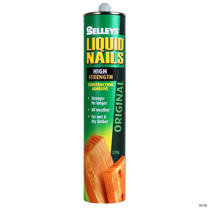 SELLEYS LIQUID NAILS is a premium grade multi-purpose construction adhesive that delivers a consistently strong and lasting bond on most building materials. Shrinkage and thermal movement in buildings can cause bonds to weaken over time, but Liquid Nails is flexible enough to response to movement allowing a strong bond to be maintained over time.