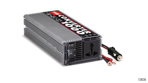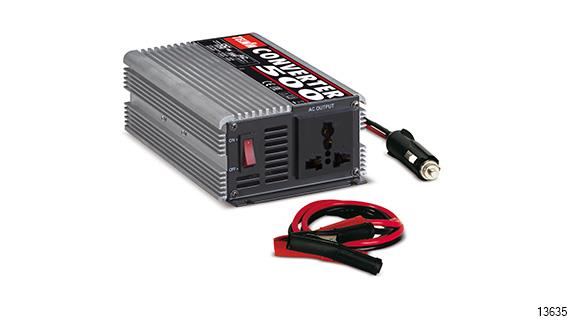 TELWIN CONVERTER 12V DC - 230V AC power inverter ideal for power supply by car or camper, of rasors, LCD or plasma TV, halogen wall lamps, hammer drills, polishing machines, electrical tools in general and for recharging batteries of lap top, pda, digital cameras, videocameras, mobile telephones etc. When connected to the cigar-lighter outlet, it converts the 12V voltage of the battery into 230V. It is protected against polarity reversal and overloads