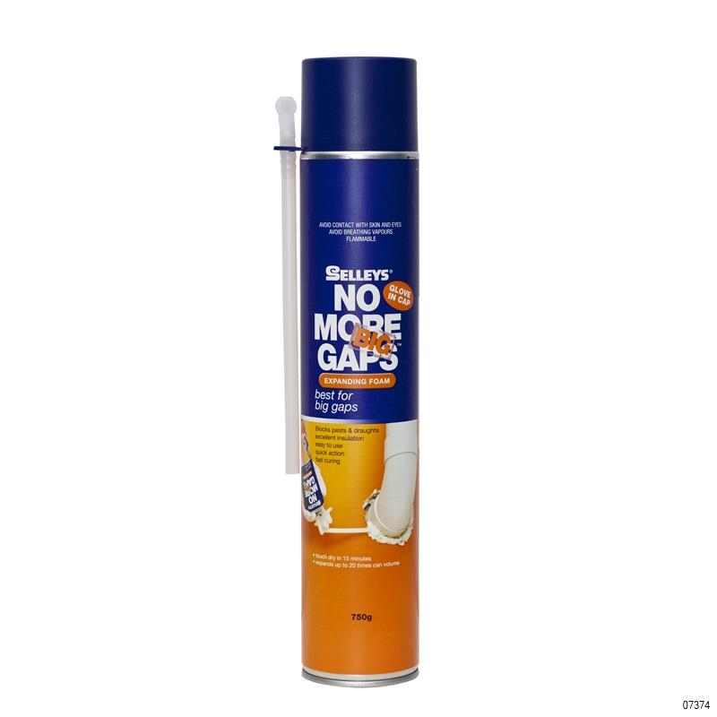 Selleys No More Big Gaps is an expanding foam, which cures into a semi rigid closed cell foam, making it ideal for filling large and irregular holes or cavities such as around pipes.