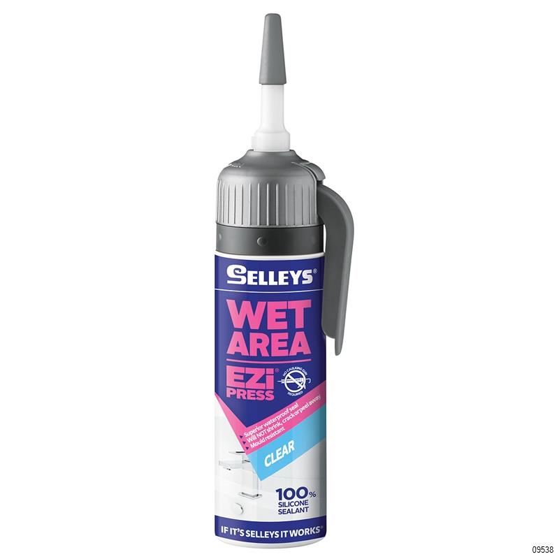 Selleys Wet Area Ezi Press is ready to use – simply press the lever to apply – no caulking gun required. It provides a superior waterproof seal and resistance to unsightly mould. Ideal for wet areas like bathrooms and kitchens.