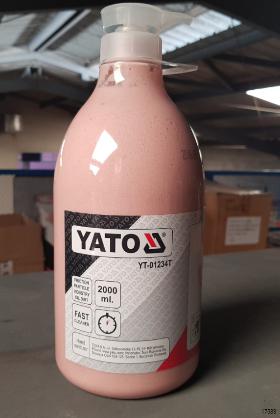 YATO Hand Cleaner is degreaser for hands. It comes in a 2 liter bottle with a dispenser. This item is especially handy for mechanics as it removes grease easily.