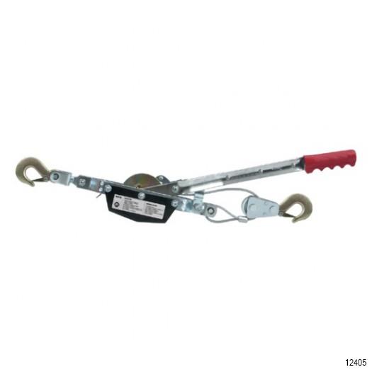 YATO Hand Pull Winch is a rope winch with a manual drive which consists of a steel body containing a drum, gears and a ratchet mechanism with a large, appropriately selected ratio. The drive lever is used to move the drum and wind the steel rope. The winch can move loads weighing up to approximately 1020 kg over a distance of 3 m. It can be used for transporting loads in the horizontal plane, e.g. for pulling boxes on a ramp. Due to its construction, it must not be used for vertical lifting.