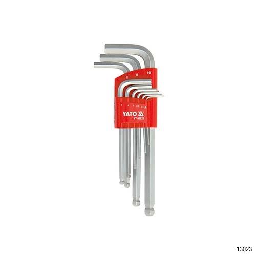 YATO Hex Key Set contains 9 detailed metric hex keys which is one of the indispensable tools in factory repair equipment, company or mechanical workshop, home repair, etc. where the main function is to hold and rotate the hex nuts. This type of hex keys will respond to high torque because it has undergone a heat treatment to achieve good hardness when being using. The product is made of stainless steel material with high hardness, so it is not bent or broken over the head when applying great force. The details are made from CrV alloy steel which is durable, and do not rust during use. There is also powder coating to increase the durability of the product.