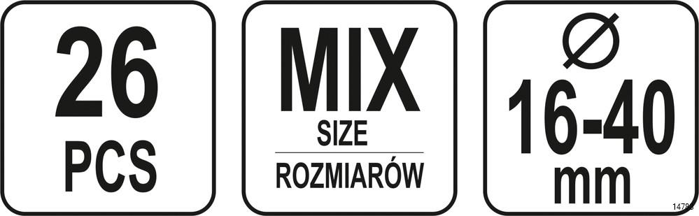 - 8 pieces of 16 mm