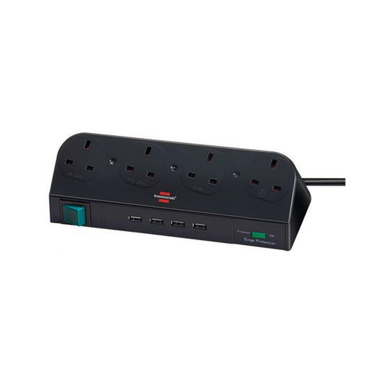 Desktop-Power a Surge Protected Socket with USB-Hub 2.0 Splitter 4-way protects expensive devices from overloads with a maximum surge current of up to 13,500 A.