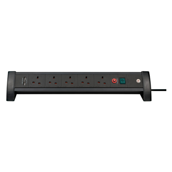 Premium-Office-Line FB 5-way Brennenstuhl extension cord in black and 3m cable impresses with its quality and safety in all areas. Its elegant, ageless desktop design made from extremely durable special synthetic material. It's protected against contact and has the following properties too: