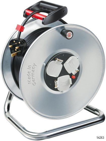 Garant Brennenstuhl cable reel with 50m extension cable impresses with quality and safety in all areas. Its hot-dip galvanised sheet steel reel body provides high stability. It’s not just rust-proof, but has the following properties too: