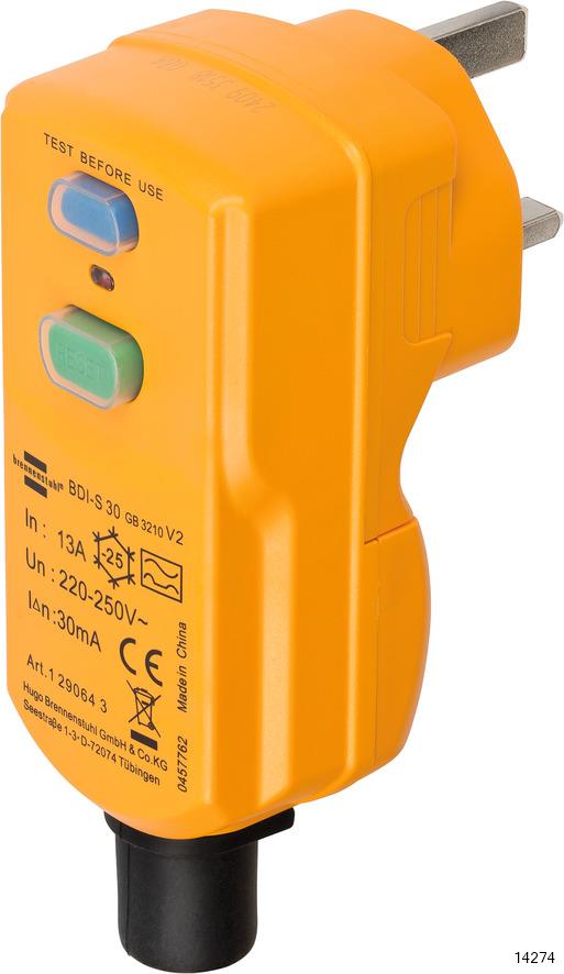 BRENNENSTUHL Circuit Breaker Plug provides effective protection against electric shocks. Instantly disconnects the live lead from the mains as soon as residual current is present.