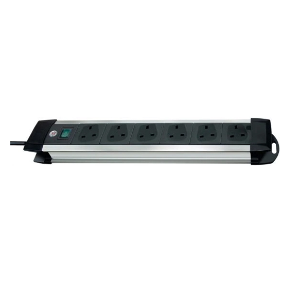 Premium-Alu-Line 6-way Brennenstuhl extension cord in alu / black and 3m cable impresses with its quality and safety in all areas. Its stylish, stable casing consists of highly break-proof, polished polycarbonate. It's extra protected against contact and has the following properties too: