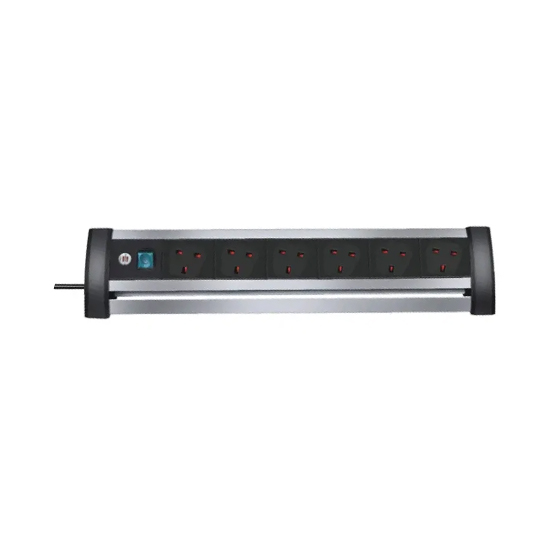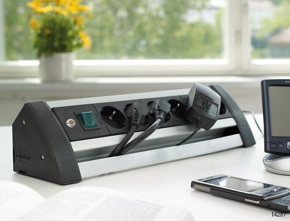 The Alu-Office-Line extension cord from Brennenstuhl in black and 3m cable impresses with quality and safety in all areas. It is ideal for devices that are plugged and switched directly on the table. It is extra protected against contact and has the following properties too: