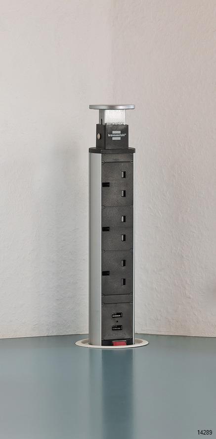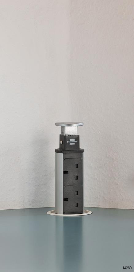 BRENNENSTUHL Tower up pop up extension socket is an innovative desk outlet for flexible workspace design.