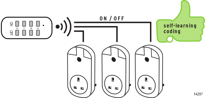 - Plug the remote control receiver into the socket and plug in the device you want to control remotely