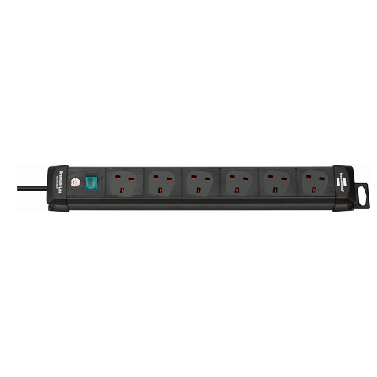 Premium-Line 6-way Brennenstuhl extension cord in black and 3m cable impresses with its quality and safety in all areas. Its stylish, stable casing consists of highly break-proof, polished polycarbonate. It's protected against contact and has the following properties too: