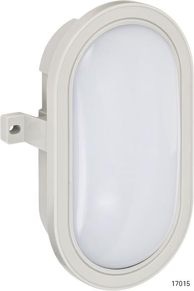 - Compact LED oval lamp made of plastic with atranslucent cover.