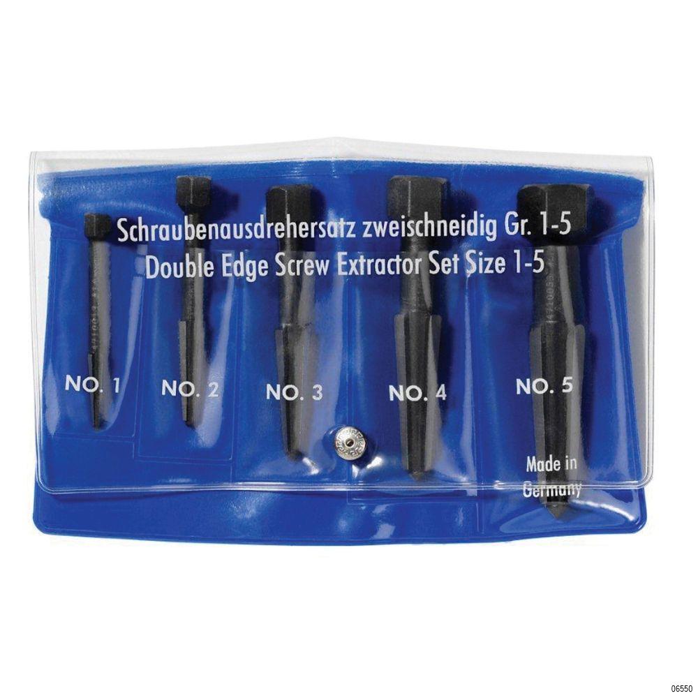 Set of 5 double-edged screw extractors from RENNSTEIG is ideal for the damage-free removal of broken screws and bolts. Simply drill into the screw with the appropriate size bit, tap the extractor into the hole and loosen the fastener. Suitable for use with right and left-hand threads.