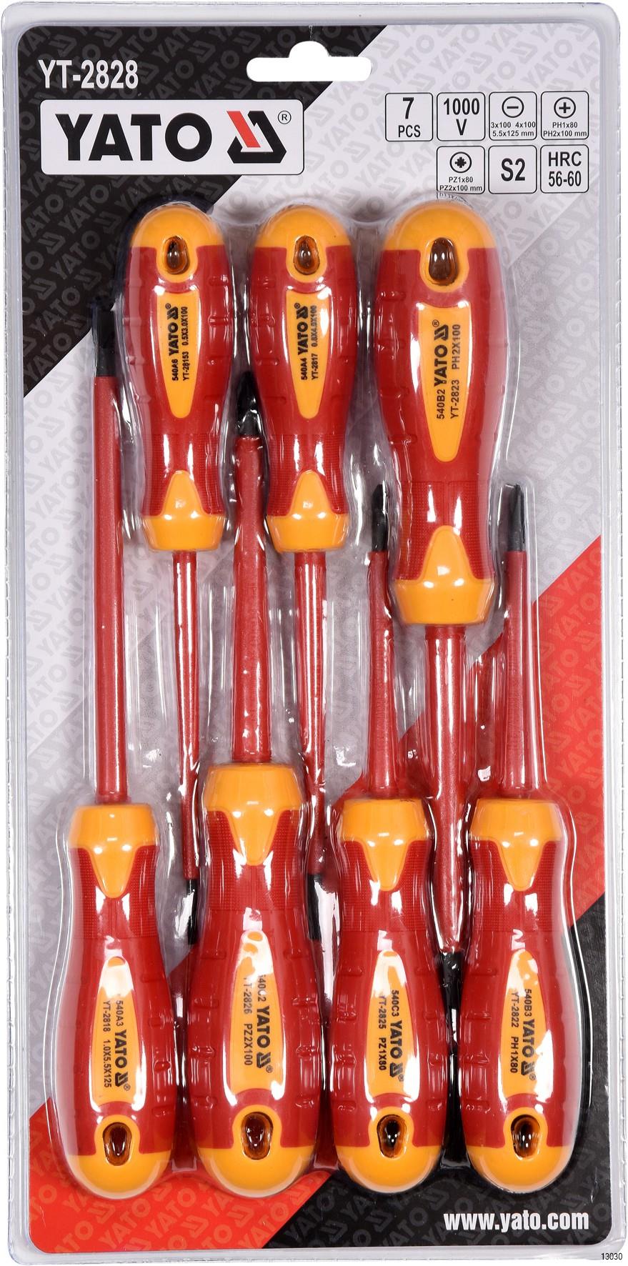 YATO Insulated Screwdriver is a a set of 7-piece with VDE insulation, made of durable S2 steel with a hardness of HRC 56-60 .