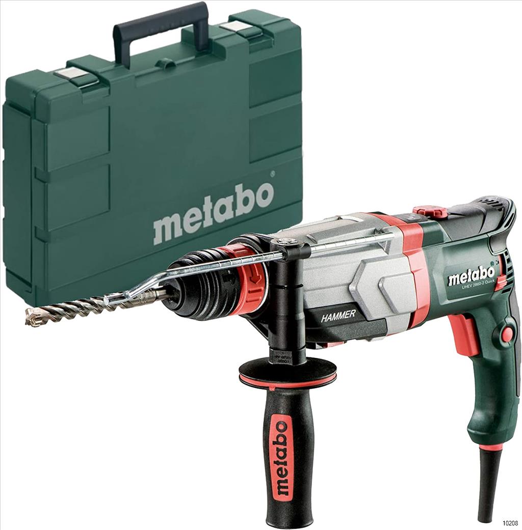 Multi hammer with 4 functions: hammer drilling, drilling without impact in two speeds and chiseling and Metabo quick change between SDS Plus hammer chuck and keyless chuck for drilling in wood & metal. Perfect ergonomics thanks to the center of gravity being near the hand and optimized handle contour.
