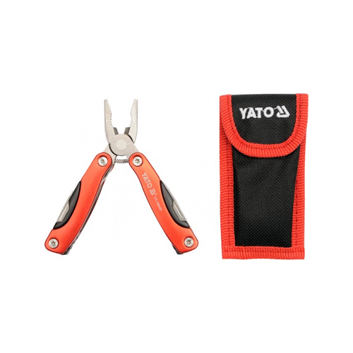YATO Multi Knife 9 in 1 is a pocket knife with multifunctional tools designed for tourists, anglers, hunters, and DIY enthusiasts. It will work well on trips as well as during minor housework. This item is made of stainless steel with the symbol "420" and aluminum.