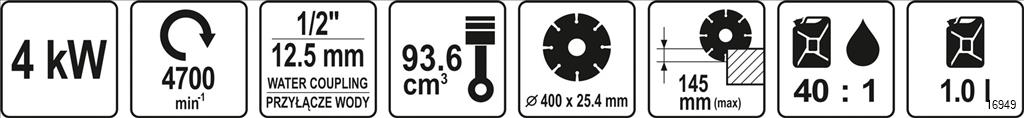 YATO Petrol Cut-Off Saw is a very strong two-stroke cut-off machine designed for dry and wet cutting of concrete and - with the appropriate type of disc - asphalt, stone and steel . Recommended for professionals.