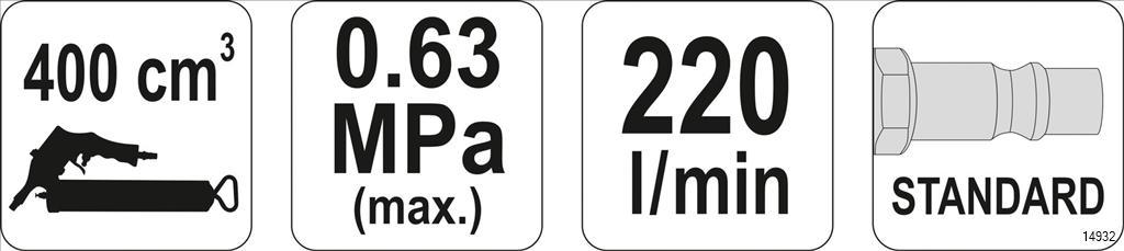 YATO Pneumatic Grease Gun is an efficient lubricator designed for the application of solid lubricants. By pressing the trigger, it enables the lubricant to be applied continuously. Used in car workshops, agriculture and industry for the maintenance of parts and devices with a kalamitki type lubrication system.