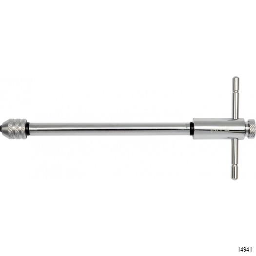 YATO Ratchet Tap Wrench is a professional T handled ratchet tap wrench. It can operate sizes M3-M10 and is 250 mm long. It is reversible and has lock position. The item is polished with chrome finish for rust resistance. It has both ratchet reverse and forward action.