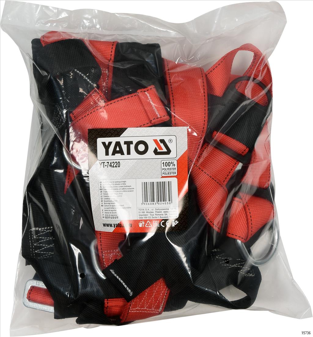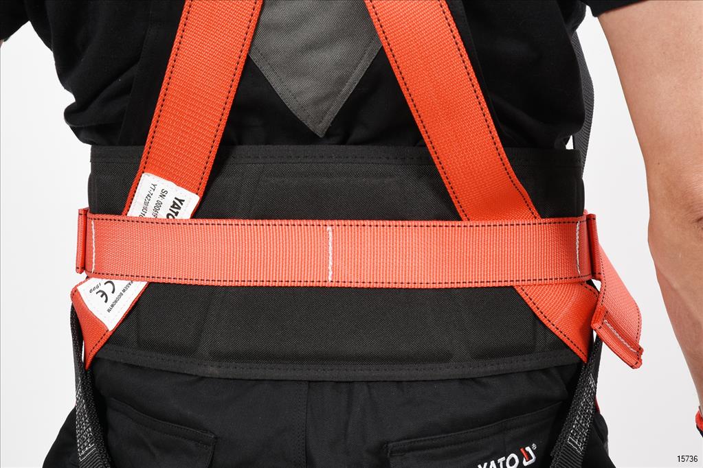 YATO Safety Harness with the waist belt is an element of the system designed to protect people against falling from a height. Properly fitted harness must fit tightly to the torso, belt and thighs so that, together with the dedicated attachment point, they can evenly distribute the forces acting on the body during a fall.