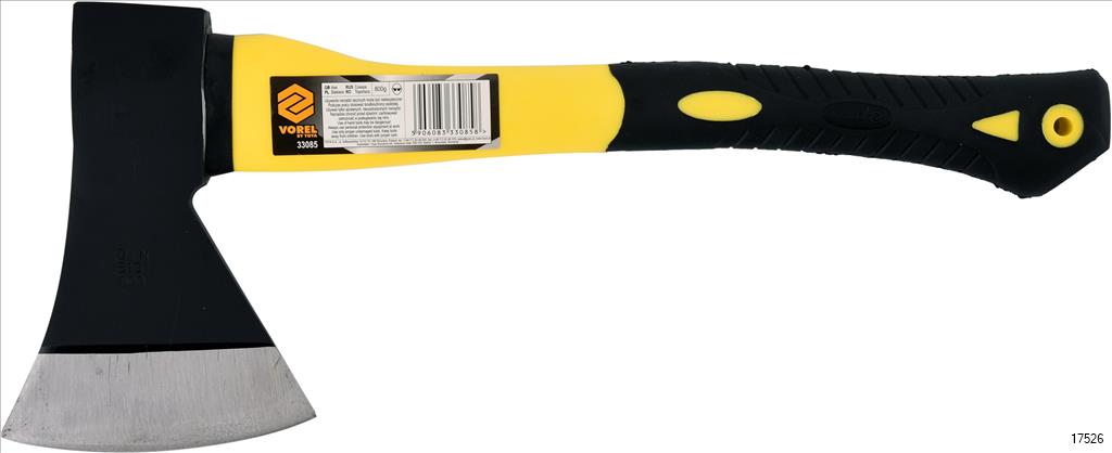 Forged steel hatchet with a wide blade designed for various applications. The handle is made of fiberglass-based material, the lower part of the handle is covered with a non-slip cover.