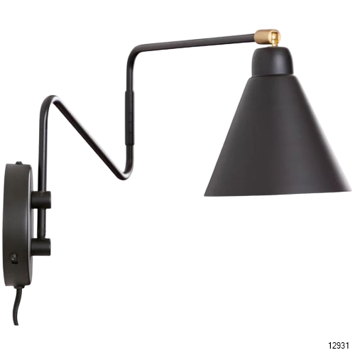 WALL LIGHT FITTING LONG NECK NO.37B E27 16x10CM BLACK