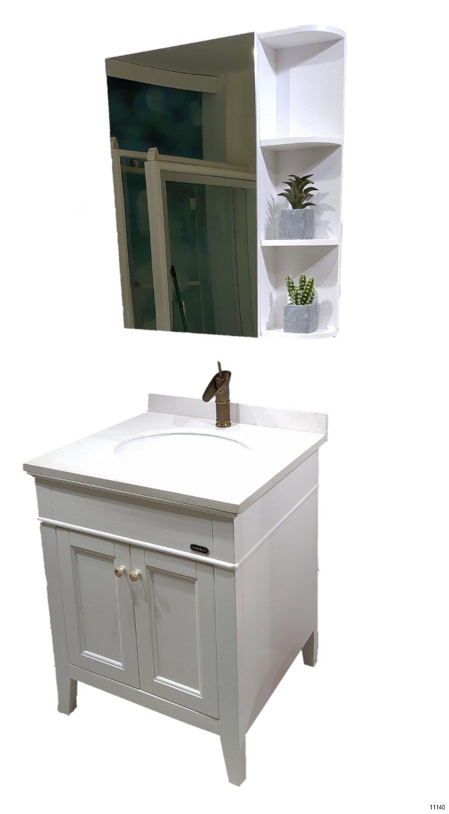 MEDCA WASH BASIN CABINET WOODEN NO.9607 WHITE WITH MIRROR, MARBLE & BASIN