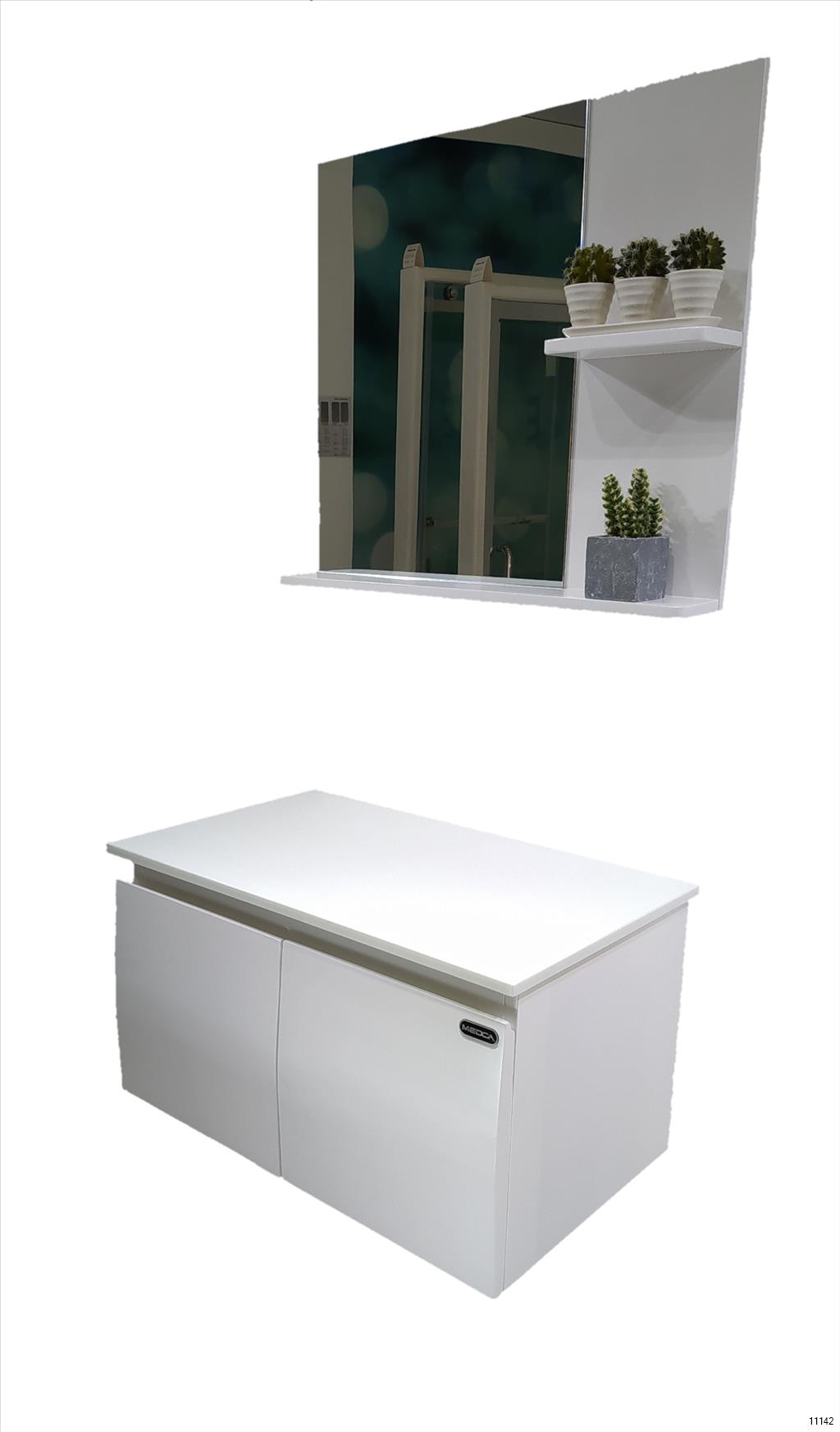 MEDCA WASH BASIN CABINET WOODEN NO.8101 WHITE WITH MIRROR & MARBLE (WITHOUT BASIN)